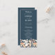 Presentamos nuestro moderno programa de bodas de boho floral jardín en un hermoso azul con tonos grises! Este programa es la combinación perfecta de elementos modernos y bohemios que seguro impresionarán a sus huéspedes. Con letras blancas que contrastan maravillosamente con los tonos azules y grises, las palabras "Bienvenida", "Ceremonia" y "Fiesta de bodas" están escritas en una letra de escritura romántica que añade un toque de elegancia y sofisticación al programa. Los nombres de la pareja también se muestran de forma destacada en una fuente decorativa angustiada, lo que la convierte en un regalo personalizado para la pareja y sus invitados. La parte delantera del programa presenta un diseño impresionante que muestra flores blancas y amarillas pálidas, creando la ilusión de un precioso jardín floral o flores secas. El toque moderno y divertido de un programa de bodas tradicional es perfecto para las parejas que quieren añadir un toque de fantasía y personalidad a su día especial. En general, nuestro moderno programa de bodas con flores en el jardín es una impresionante incorporación a cualquier celebración boda. Los tonos azules y grises, junto con el bonito diseño floral y las elegantes fuentes, hacen de este programa una representación perfecta de un boda bohemio moderno. Así que si buscas un programa único, elegante y memorable, esta es la elección perfecta para ti.