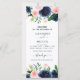 Programa de Boda Primaria Floral Azul Marina, Blanco y Rubor Rosa Moderno y Elegante - incluye tipografía de escritura hermosa y elegante con flores botánicas modernas y vegetación para la celebración especial del Día de la Boda.