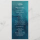 Este programa de bodas acuáticas en el océano húmedo es perfecto para su simple boda de boho tropical. Está diseñado con minimalistas hojas tropicales blancas y un impresionante fondo azul-verde oscuro.