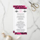 Este moderno y moderno programa de bodas con lámparas de araña rosa fucsia, blanco y negro, o tarjeta de pedido de servicio, tiene unas estampillas ornamentales y un fondo de motivos que se adapta a la invitación a la boda que se muestra a continuación. Si necesita ayuda para personalizarlo con sus datos, o si necesita cualquier otro elemento coincidente, envíe un correo electrónico a niteowlstudio@gmail.com.