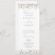 Este programa de bodas de flores silvestres multicolor de verano es perfecto para un boda rústico. El diseño se compone de acuarelas rosas, ruidosas, violetas, rojas, borgoñas, amarillas, blancas y mariposas con una vegetación bien integrada en elegantes ramos florales.