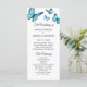 Programa de matrimonio de mariposas de color azul. Elegante elección para bodas de verano. Parte de una colección de bodas. Tarjeta con opción de comida.