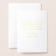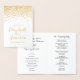 Este moderno y elegante programa de bodas se coordinará con cualquier tema. Cuenta con puntos reales de Relieve metalizado dorado que bajan desde la parte superior de la tarjeta y el guión en la parte delantera y trasera. Personalizar con todos los detalles del evento. Disponible también en Relieve metalizado plateado.