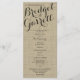 Diseño de texto y programas de boda de tarjeta en rack con formato burlap impreso con texto marrón o cambiar el color del texto como prefiera.