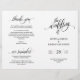 Esta es la tarjeta plegable del programa de la ceremonia de boda, en un guión elegante con temática de color negro. Está diseñado con acento de desplazamiento que puede ser personalizado con texto personalizado/ personalizado para su fiesta nupcial, detalles de la ceremonia, notas conmemorativas y mensaje de agradecimiento. ** Nota: estos programas de papel de peso de texto llegan planos y requieren plegado para ensamblar.