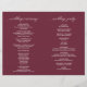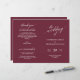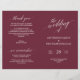 Esta es la tarjeta del programa de la ceremonia de boda plegable, con un elegante y moderno tema borgoñés. Está diseñado con acento de desplazamiento que puede ser personalizado con texto personalizado/ personalizado para su fiesta nupcial, detalles de la ceremonia, notas conmemorativas y mensaje de agradecimiento. ** Nota: estos programas de papel de peso de texto llegan planos y requieren plegado para ensamblar.