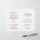 Esta es la tarjeta del programa de la ceremonia de boda plegable, con un elegante y moderno tema borgoñés. Está diseñado con acento de desplazamiento que puede ser personalizado con texto personalizado/ personalizado para su fiesta nupcial, detalles de la ceremonia, notas conmemorativas y mensaje de agradecimiento. ** Nota: estos programas de papel de peso de texto llegan planos y requieren plegado para ensamblar.