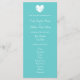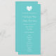 Elegante programa de bodas azul turquesa y blanco con corazón rústico. Plantilla en blanco con tipografía de guión elegante. Parte de la hermosa colección de temas románticos a juego. Diseño inspirador de diseño de papelería de moda para novios y novios con clase que se casan. Incluye nombres personalizados, fecha, ubicación, orden de ceremonia y fiesta de boda. Accesorios y suministros para el matrimonio de bonito para la planificación de su boda, ducha de novia, compromiso y más. También es agradable para una fiesta de bodas con temática playera.