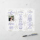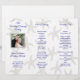 Programa de boda con foto para doblar en tercios. Doblez de acordeón con fondo de patrón de estrella de mar y texto azul añil. Personalice en tres secciones con la foto de la pareja en la portada. El reverso de este papel no tendrá el patrón y será blanco sólido.