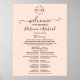 Un simple y elegante cartel de programa de ceremonia de boda con monograma de papel de aluminio dorado rosa y follaje, en cartón de espuma. Fácil de personalizar con tus detalles. Cartel de programa de ceremonia de boda moderno boho editable, invitación de boda con foto de guirnaldas, personalizable, fuente manuscrita caligráfica, simple, elegante.