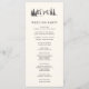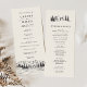 Nuestro programa de bodas de moda rústico y invernal incluye detalles de su ceremonia con un ilustracion esbozado de picos de montaña, pinos y un río fluido a lo largo del fondo. Revertir muestra los miembros de la fiesta de boda con campos de texto fácilmente modificables. Coordina con nuestra colección de invitaciones a bodas de Mountain Sketch. Utilice los campos de plantilla para agregar la información de la ceremonia y de la fiesta nupcial y, a continuación, haga clic en "Personalizar" para cambiar la posición de los elementos si fuera necesario. ¿Necesitas ayuda? Contáctame a través del enlace "Preguntar a este diseñador" en esta página.