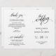 Esta es la tarjeta de programa de ceremonia de boda plegable, con escritura elegante en tema de color negro.