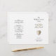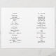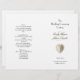 Programa de bodas en la playa blanca y negra con una única concha en forma de corazón en la parte delantera. Todo el texto es negro con un gran marcador y los nombres en la parte delantera. Plantilla sencilla y elegante para una ceremonia de temática tropical.