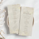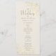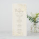Este elegante programa de bodas cuenta con delicados ilustraciones florales dorados sobre un suave fondo de marfil con escritura moderna y fuentes serif. Perfecto para enumerar su pedido de ceremonia y los detalles de la fiesta de boda en un diseño formal y refinado. Una adición atemporal a tu día de bodas clásico.