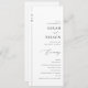 Presentamos nuestro programa de Boda moderno y sencillo, diseñado con elegancia y claridad para guiar a sus huéspedes durante su día especial. Este programa presenta un diseño optimizado que presenta de forma elegante los eventos de la ceremonia de su boda de principio a fin, asegurando que todos los asistentes conozcan el horario y puedan celebrar cada momento sin confusión. La parte delantera muestra los nombres de la pareja en un hermoso y moderno guión, marcando un tono sofisticado. En el interior, cada segmento de la ceremonia es claramente detallado, desde la procesión hasta el pronunciamiento del matrimonio, lo que la hace perfecta no sólo para bodas simples modernos sino también para personalizados específicos como una ceremonia católica romana. Este programa sirve como un conservador funcional y hermoso que los huéspedes apreciarán mucho después del día de la boda, encarnando una mezcla de practicidad con un toque de sentimiento personal.