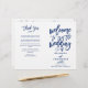 Un programa de diseño, moderno y de moda. Con letras de guión de broche. Personalice el uso de las plantillas de texto proporcionadas o haga clic en el botón "personalizar" para obtener herramientas de edición más avanzadas. Asegúrese de comprobar los tipos de papel que se ofrecen y tenga en cuenta que estos deberán plegarse en el centro. Visite la tienda o nuestra colección de "Tipografía de Moda" para ver más artículos de coordinación para su día especial!