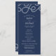 Nuestro programa de bodas en moda costera presenta sus detalles de la ceremonia con letras blancas en azul marino, acentuadas con una cuerda náutica en la parte superior. Revertir muestra los miembros de la fiesta de bodas con campos de texto fácilmente modificables. Se coordina con nuestra colección de invitaciones nupciales Starfish para elegantes bodas de verano, playa o náuticos. Utilice los campos de plantilla para agregar la información de la ceremonia y de la fiesta nupcial y, a continuación, haga clic en "Personalizar" para cambiar la posición de los elementos si fuera necesario. ¿Necesitas ayuda? Contáctame a través del enlace "Preguntar a este diseñador" en esta página.