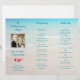 Programa de ceremonia de boda de playa para doblar en tercios, con plantilla de foto y flores de plumeria. Agua turquesa y texto coincidente sobre una imagen de arena de playa con foto cuadrada de la pareja, que estará en la parte frontal de este programa doblado. **Tenga en cuenta que la parte trasera de este papel será blanca - no se puede agregar nada en la parte de atrás.