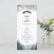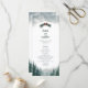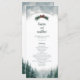 Este programa de bodas de pinos presenta un moderno y lúdico tipo de letra y ricas verduras contra una página blanca con un cielo azul. Perfecto para un boda rústico o para cualquier ocasión especial.