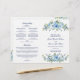 Esta ceremonia de boda católica con programa masivo presenta un estilo de folletos doblados, flores de color azul y blanco polvorientos y una cruz cristiana. Los detalles de la ceremonia están escritos en escritura clásica caligráfica y tipografía serif. Personalice con los nombres de su fiesta de boda utilizando los campos de texto fácilmente modificables. Coordina con nuestra elegante colección de invitaciones a bodas Juliette. Asegúrese de examinar los demás productos de esta colección para crear una moda, una búsqueda coordinada para su boda. Si necesita ayuda para personalizar este elemento o desea que cree productos adicionales que coincidan, por favor, póngase en contacto conmigo en dawn@albamarie.com. ¡Me gustaría ayudar!
