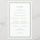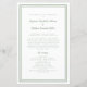 El elegante y minimalista programa de ceremonia de boda verde y blanco presenta un diseño sencillo y moderno con un borde doble enmarcado en verde sabio rústico sobre un crujiente fondo blanco. La redacción clásica tradicional proporciona una sofisticación intemporal. Personalice los detalles de la ceremonia de boda para sus invitados en letras de caligrafía y escritura de moda. La parte posterior de la tarjeta coincide con el color verde sabio en blanco crujiente y se trata de tu fiesta de boda. Para obtener resultados óptimos, reemplace los detalles de la plantilla con sus propios detalles, dejando espacio entre párrafos como en el ejemplo. Capitalizar y utilizar todos los fundas inferiores cuando se especifique. No dude en ponerse en contacto conmigo en invitationsuites@gmail.com o con la función de mensaje si tiene alguna pregunta relacionada con este o cualquiera de nuestros productos o tiene una solicitud de color personalizado.