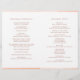 Bienvenido a tu invitado con este exquisito programa de ceremonia de boda de color melocotón, que incluye un delicado monograma botánico dibujado a mano con nombres de parejas y hermosas franjas acuáticas de melocotón de arriba y abajo en la parte delantera y en el interior. De vuelta con un magnífico lavado de acuarela en una hermosa mezcla de melocotón, coral y colores naranjas polvorientos y gracias mensaje en blanco. Capacidad para personalizar el texto en todos los lados. NOTA: estos programas llegan planos y requieren doblar por el medio para ensamblar. Se recomienda el documento de valor predeterminado. Para un pliegue limpio sugerimos un papel de puntuación con una carpeta de hueso barata. El tamaño se refiere al programa "antes" de que se doble, ya que se ve en la imagen de previsualización "frontal". Detalles modernos de caligrafía escrita a mano. Parte de nuestra colección "Peach Watercolor Botanical Monogram Boda" con una variedad de productos de coordinación disponibles, incluyendo menú, tarjetas de cartas de asignación, número de tabla y tarjetas de agradecimiento. Visita toda la colección con este enlace: https://www.zazzle.com/collections/peach_watercolor_botanical_monogram_wedding-119201759263203074