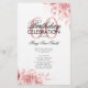 Elegante "Programa de Fiesta de Cumpleaños" con Arreglo Floral en Rosa Oro con texto personalizado.