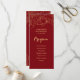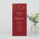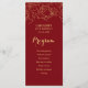 Programa de Cumpleaños Floral de Oro Rojo. Diseño elegante y moderno con detalles de dibujos botánicos, Relieve metalizado de oro falso y tipo de letra de escritura tipográfica. Sencilla tarjeta de moda perfecta para una elegante celebración de cumpleaños femenina. Personalízalo con tus propios detalles.