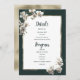 Esta hermosa invitación de boda cuenta con un hermoso diseño de acuarela blanca, verde oscuro y dorado elegante orquídea tropical floral Programa de detalles de boda que es perfecto para cualquier ceremonia clásica y sofisticada. Esta exquisita y elegante floral tropical es perfecta para la pareja lujosa y elegante. Personalice este diseño con su mensaje e información personalizada. Todos los diseños son impresos.