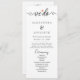Modern Minimal Wedding Program Order Of Events Este es un moderno programa de bodas con un elegante tipo de letra y un minimalista layou. Edite toda la redacción y todos los colores de fuente y fondo. // Para ver los artículos a juego, por favor visite la colección "HARLOW" en la tienda Sincerely By Nicole Zazzle. * Si te gusta este diseño pero no lo ves disponible para algo que estás buscando, por favor contacta conmigo en cualquier momento