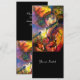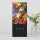Pintura en acuarela colorida, caprichosa y vibrante en colores rojo brillante, marrón, amarillo, naranja, verde con lámina de oro y plata.