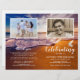 Programa conmemorativo de palomas funerarias de presupuesto que presenta una imagen de todo el océano, en la parte delantera una foto del fallecido, su nombre, fechas, el lugar de la celebración, fecha del evento. En el interior hay un obituario, y orden de servicio; y en el fondo otra foto, una nota de agradecimiento y el segundo lugar para después del funeral. NOTA: Estos vienen como un papel plano de calidad, necesitarás doblarlos tú mismo.