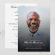 Honre una vida querida con este programa de funeral con foto personalizada, que presenta una imagen tributo en toda la portada combinada con un diseño de memorial limpio y clásico. El vibrante diseño de la foto se complementa con un suave desvanecimiento en la parte inferior, lo que permite que el nombre, las fechas y el mensaje sincero resalten en texto blanco elegante. En el reverso, el programa ofrece un Orden de Servicio cuidadosamente estructurado, organizado con encabezados claros y una tipografía serif atemporal para una lectura fácil. Perfecto para memoriales, funerales o celebraciones de la vida, este programa personalizado proporciona una hermosa manera de compartir la historia de un ser querido y guiar a los invitados a través del servicio. Ideal para honrar a padres, abuelos o mentores, este diseño moderno pero respetuoso ofrece claridad y calidez. La portada con foto completa agrega profundidad emocional, lo que la convierte en un recuerdo que amigos y familiares apreciarán durante años.