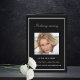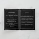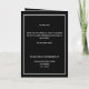Un elegante programa de 4 páginas. Un fondo negro, un marco plateado falso y espacio para tu foto en la portada. Personaliza y agrega nombre, fechas y tu texto. Texto blanco.