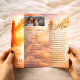Crea un tributo hermoso y edificante con este Programa de Funeral de las Puertas del Cielo, que presenta cielos serenos, luz suave y las simbólicas Puertas del Cielo. Este elegante folleto conmemorativo de puerta plegable ofrece espacio para fotos queridas, obituario, orden de servicio, poemas, oraciones y un mensaje final de gratitud. Perfecto para funerales, celebraciones de la vida, servicios de regreso a casa y eventos de recuerdo. Personalice fácilmente todo el texto y las imágenes para honrar a su ser querido de una manera significativa y personal.