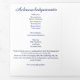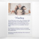 Este elegante programa funerario triplicado ofrece un homenaje bellamente estructurado y completo para honrar y recordar a un ser querido. La elegancia en azul y blanco crea una estética serena y respetuosa. El formato único del folleto plegado permite un flujo lógico de información, guiando a los asistentes a través de todo el servicio. Ofrece un espacio generoso para incluir un orden detallado de servicio, reconocimientos personalizados, conmovedores poemas, himnos y sentidos tributos. Un panel fotográfico dedicado en la parte delantera ofrece el lugar perfecto para mostrar una imagen preciada de la persona que se recuerda. Este programa sirve no sólo como una guía funcional sino también como un conservador reconfortante y significativo para que la familia y amigos se aferren, preservando bellamente la memoria de una vida bien vivida.