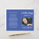 Este elegante programa de ceremonias conmemorativas azules con fotos es una hermosa manera de recordar a un ser querido durante la celebración del servicio de vida. Una vez que los recibas, solo doblarlas a la mitad y ofrecerles la ceremonia a los invitados.