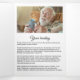 Este hermoso programa de servicio en memoria capta la esencia de una vida bien vivida, ofreciendo un cálido y personal tributo a un ser querido. La portada muestra una fotografía a todo color de tu ser querido, acompañada por la frase "En la memoria amorosa" en un guión elegante, junto con el nombre y las fechas de vida de tu ser querido, lo que da un tono de reverencia y amor. Dentro, el programa se abre para revelar un collage de fotos alegres, mostrando recuerdos apreciados que reflejan la vida y el espíritu de la persona. El programa ofrece un espacio para un obituario, un orden detallado de servicio y un reconfortante poema o pasaje, que proporciona consuelo y paz a los asistentes. Este programa está diseñado para ser un conservador significativo, honrando la memoria de un individuo querido con gracia y dignidad, mientras brinda orientación y consuelo a la familia y amigos.