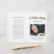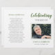 Este elegante programa de ceremonias conmemorativas de fotos en verde y negro es una hermosa manera de recordar a un ser querido durante la celebración del servicio de vida. Una vez que los recibas, solo doblarlas a la mitad y ofrecerles la ceremonia a los invitados.