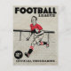 Logo de un jugador de un programa de fútbol de la época de un famoso futbolista pateando una pelota de cuero.
