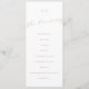 Esta sencilla y elegante tarjeta de programa para eventos de guiones es perfecta para un evento inspirado en un caprichoso boda o un fiesta de jardín. El diseño presenta un guión de acento elegante en un romántico color rosa natural con un estilo minimalista. Esta tarjeta de programa se puede usar para una recepción de boda, una cena de ensayo o cualquier evento.