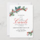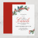 Esta invitación festiva y elegante fue creada para anunciar un programa de música especial y un servicio de lectura de las escrituras que típicamente se celebran durante la temporada de Adviento de Navidad por iglesias, coros y orquestas. Cuenta con vibrantes hojas de acebo y bayas en esquinas opuestas de la tarjeta y una elegante disposición del texto que anuncia el evento. Personalice la plantilla de texto con sus detalles. Esta invitación/anuncio se puede pedir en formato impreso o en formato de descarga digital para enviar electrónicamente o publicar en el boletín de su iglesia. Simplemente elija el formato que desee al realizar su pedido.