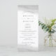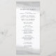 Nuestro elegante programa de boda presenta los detalles de su ceremonia en un rico carbón negro apagado, acentuado con lavados de acuarela gris translúcida en la parte superior e inferior. El reverso lista los miembros de su grupo de boda con campos de texto fácilmente editables. Coordina con nuestra colección de invitaciones de boda Mist.