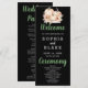 Presentamos nuestro Programa de Bodas de Serenidad de Otoño Negro, una cautivadora elección para parejas que buscan un toque moderno y ligeramente bohemio para su boda de otoño o otoño. El fondo negro profundo sirve de lienzo para un diseño contemporáneo con calabazas blancas y naranjas pálidas, girasoles artísticamente dispuestos sobre un encantador naranja de moda rústica y un mantel blanco. El programa Black Autumn Serenity Wedding captura perfectamente la esencia de la temporada de otoño, combinando una estética elegante con el encanto rústico del otoño. Los tonos suaves, pálidos, naranjas y blancos de las calabazas y los girasoles evocan una sensación de tranquilidad y calidez, creando un programa visualmente encantador. En la parte trasera del programa, descubrirás una lista cuidadosamente seleccionada de la fiesta de bodas presentada en negro y gris clásico. El tipo de letra en bloque predominantemente simple asegura claridad y sofisticación, mientras que las palabras "Bienvenida", "Ceremonia" y "Fiesta de Bodas" ocupan el centro del escenario en un tipo de letra de guión decorativo. Estos elementos guionados le dan un toque de elegancia y personalización al diseño, haciendo de su programa un placer para usted y sus invitados. Elija el Programa de Boda de la Serenidad del Otoño Negro para infundir su día de boda con los colores y el ambiente serenos del otoño. Con un diseño elegante y detalles atentos, este programa es perfecto para las parejas que quieren celebrar su amor en un ambiente que se adapta al espíritu de la temporada de otoño.