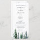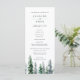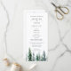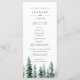 Nuestro programa de boda rústico y chic invernal presenta los detalles de su ceremonia coronados por un solo pino en verde cazador pintado a la acuarela, rodeado de nieve. El reverso enumera a los miembros de su cortejo nupcial con campos de texto fácilmente editables. Coordina con nuestra colección de invitaciones de boda Timber Grove para bodas rústicas y elegantes en entornos boscosos o forestales. Utilice los campos de la plantilla para agregar la información de su ceremonia y cortejo nupcial, y luego haga clic en "Personalizar" para reposicionar los elementos si es necesario.