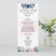 Este programa de boda moderno combina una aireada vegetación con toques de hoja verde, mostrando un elegante motivo botánico que incluye delicado eucalipto acuarelado junto con encantadoras hojas de purpurina dorada. Abarca detalles esenciales como los nombres de la novia y el novio, la fecha y el lugar de la boda, un sentido mensaje de agradecimiento, el orden de la ceremonia, detalles sobre el séquito nupcial y la opción de incluir un conmovedor tributo "en memoria amorosa".