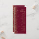 El borde izquierdo de este elegante y moderno programa de bodas presenta un diseño purpurina de imitación dorada. El texto del personalizable combina la escritura a mano de color dorado pálido, el copperplate y las letras cursivas en un fondo rojo borgoña.