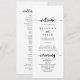 Este minimalista programa de bodas caligráficas es perfecto para un boda rústico. El diseño, sencillo y elegante, presenta una tipografía de escritura clásica y elegante en blanco y negro.