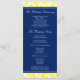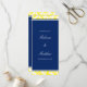Un elegante programa de bodas amarillo y azul marino. Presenta un moderno y floreciente patrón de damasco giratorio. Personaliza fácilmente tu evento.