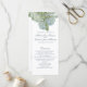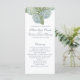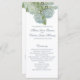 Hidreneas azules con un fondo azul polvoriento (pantone 16-4010tpx o hex #8c9dad) en el programa editable de ceremonia de boda. Perfecto para la primavera, el verano, las bodas en el jardín. Vea todas las piezas coordinadoras de la colección de Bodas hidrangea azul.